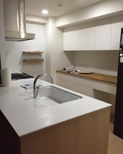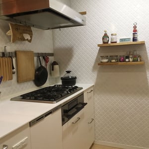 調理台側は、シンク周りなどを自由な寸法でプランしたかった為、オーダー製作としています。